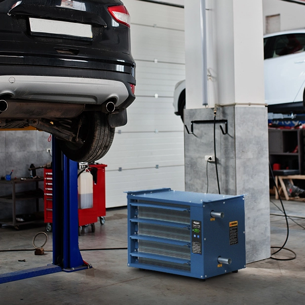 AlorairGarage hydronic unit heater harnesses heat from the hot water supplied by the boiler in your basement. This is a heater you can safely and conveniently use for as quickly as five minutes or an hour. It is convenient, energy-saving, and affordable to install. Truly perfect as a garage heater!