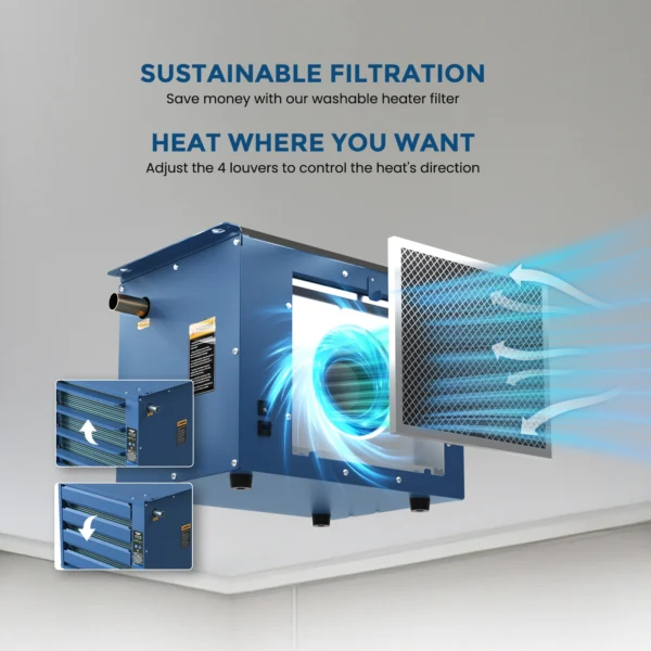 Efficient, Low-Noise, Hanging Hot-Water Heater for Large, Open Spaces (1,800-3,000 sq.ft.)