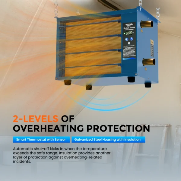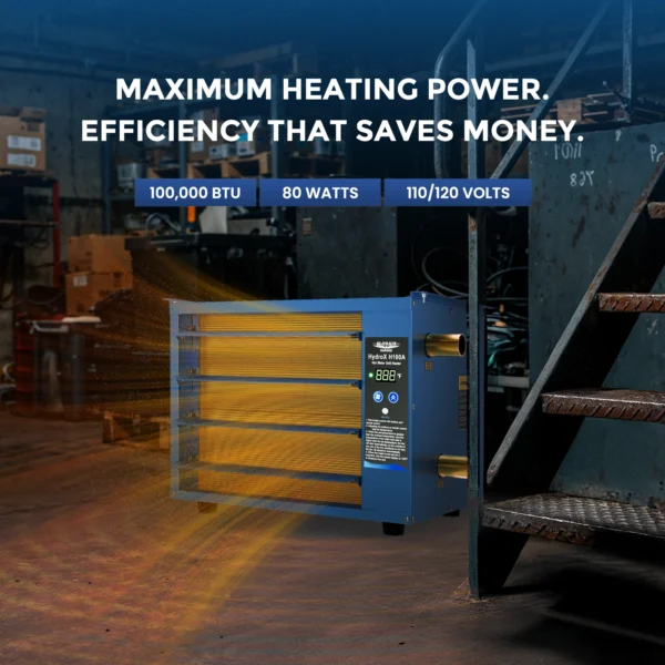 Despite its incredible heating power and 1,000 CFM fan speed, the HydroX H100A stays impressively quiet at only 63 dBA.Â