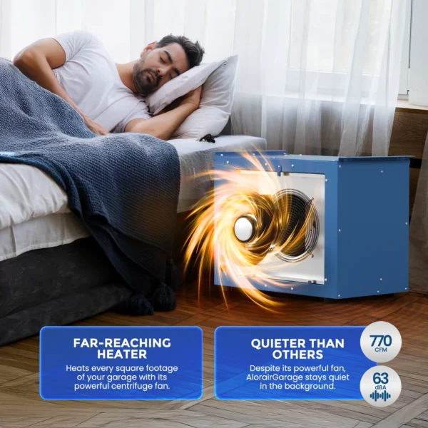 The ceiling-mounted AlorairGarage is the best garage heater for a workshop. It stays out of the way, letting you use every square footage in your workshop garage.Â