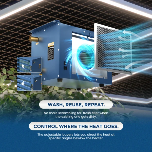 AlorairGarage is a powerful and versatile heater designed for garages but is also well-suited for a variety of indoor and semi-outdoor settings. Since it may be ceiling-mounted, it can also be installed in indoor spaces with busy floors, like workshops and greenhouses.